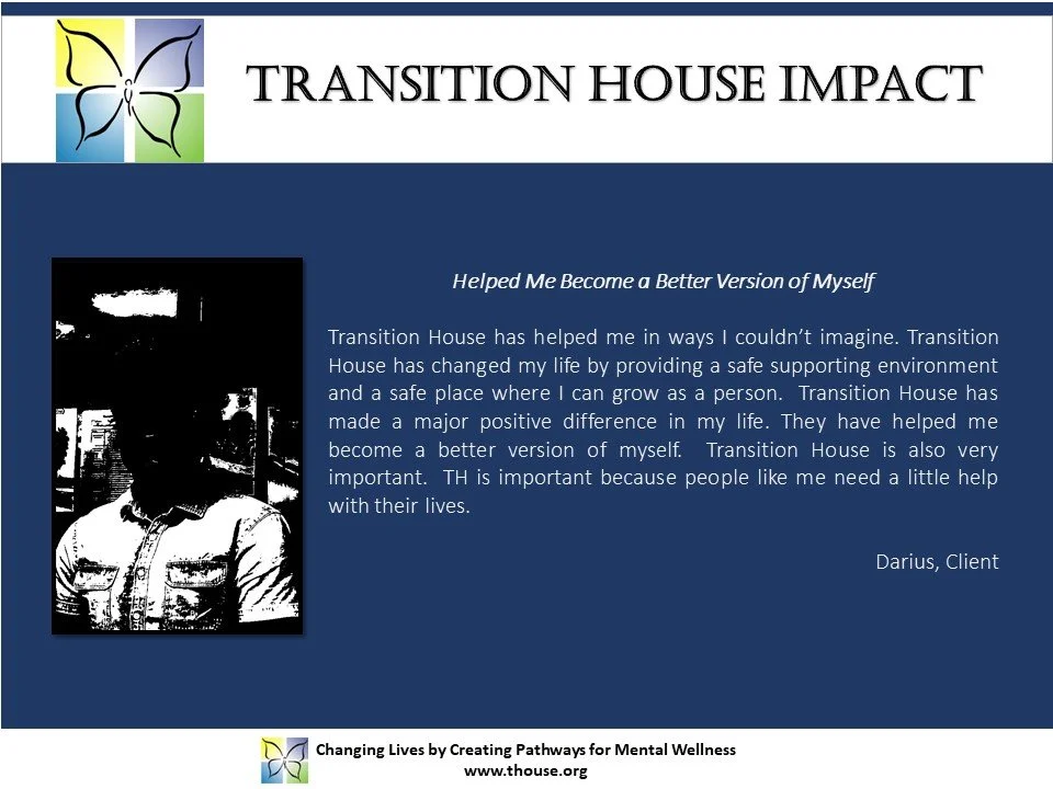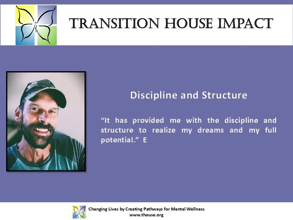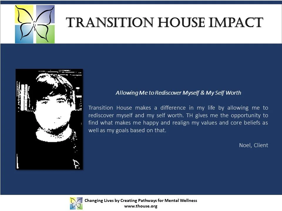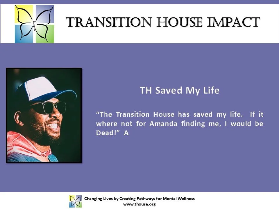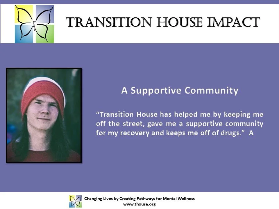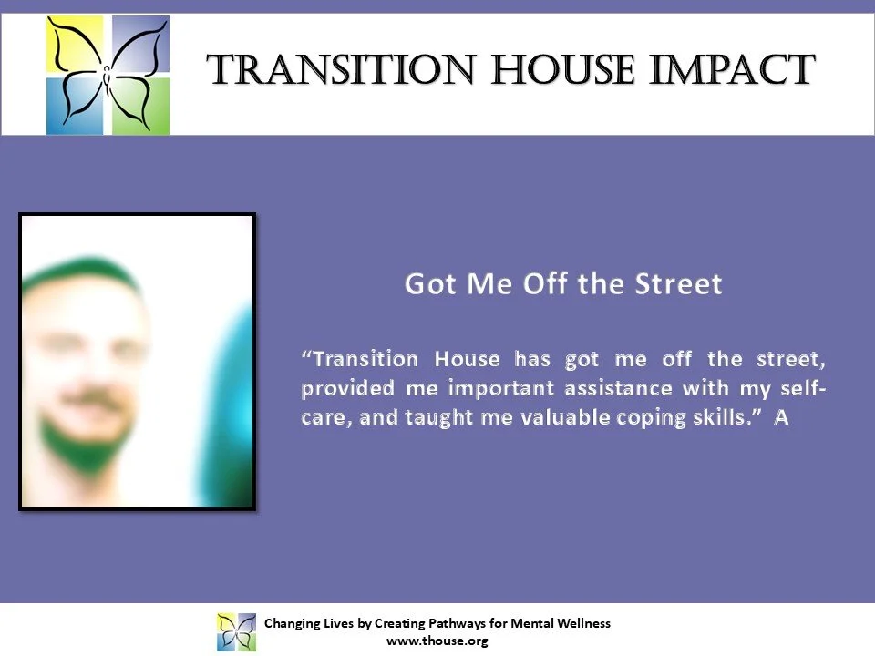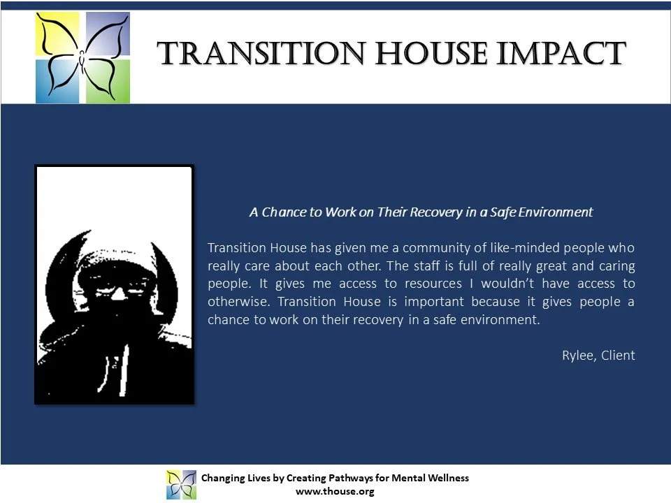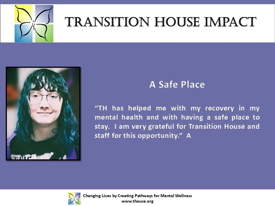 “Transition House matters because it’s a place that saves you when you’re at your lowest point mentally. They help you re-stabilize and have a safe place where you can live. I don’t know where I would be without Transition House.”