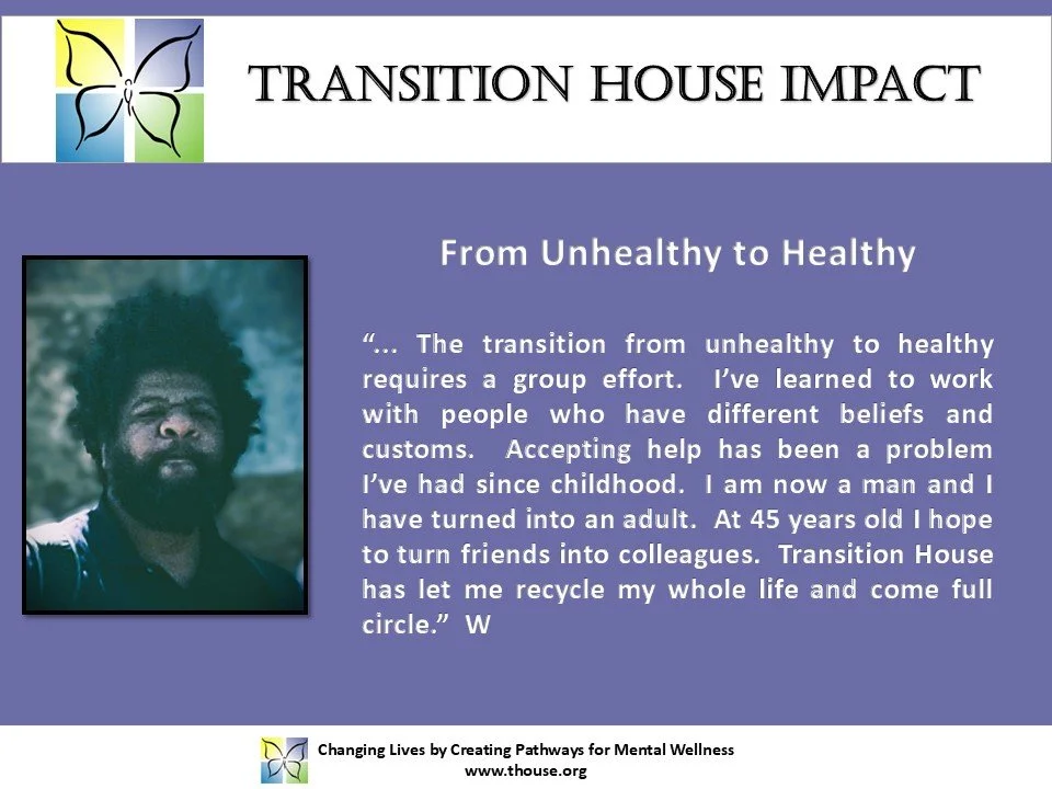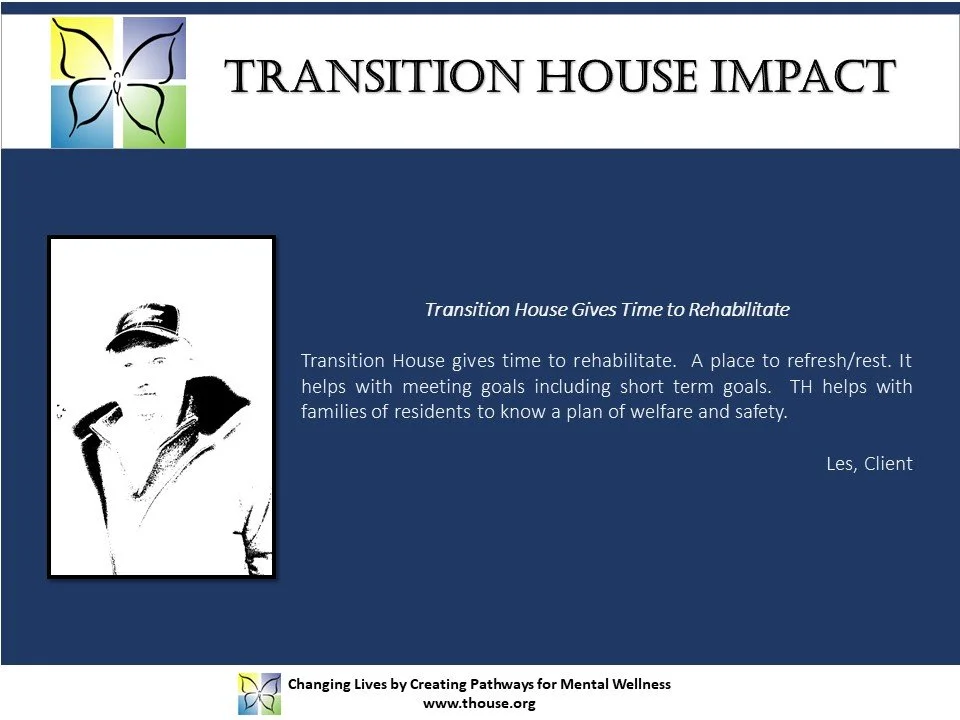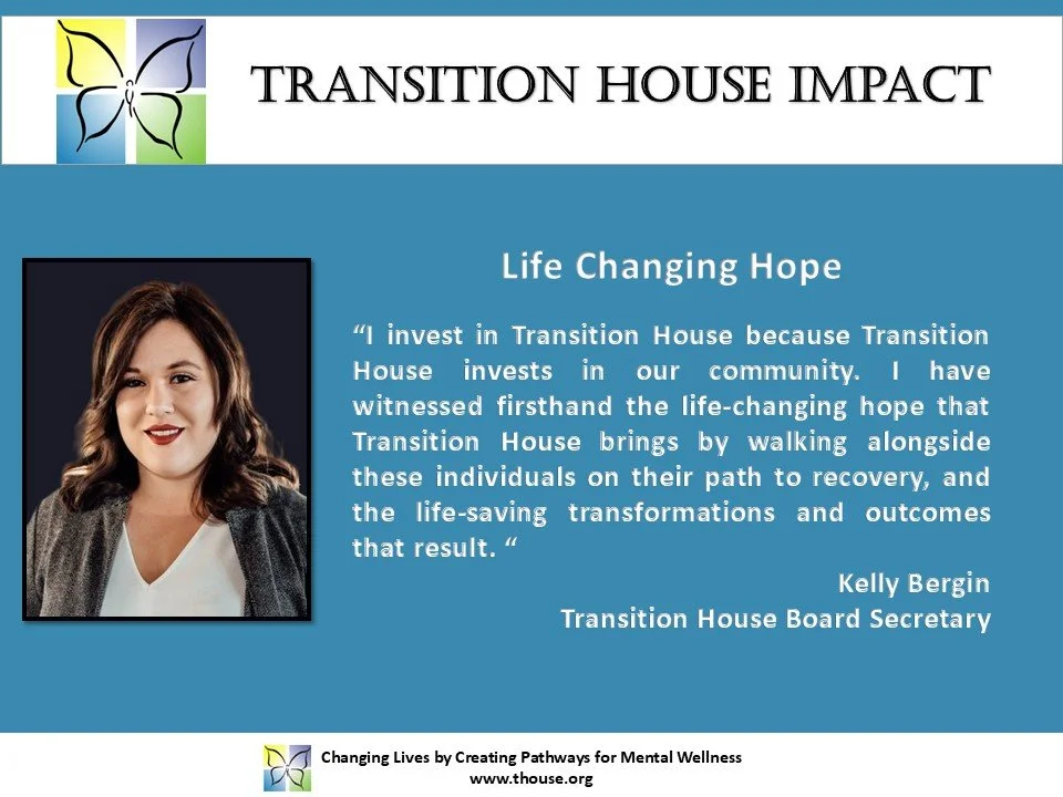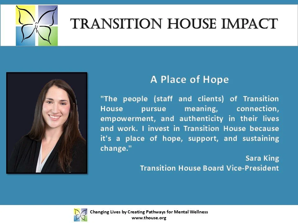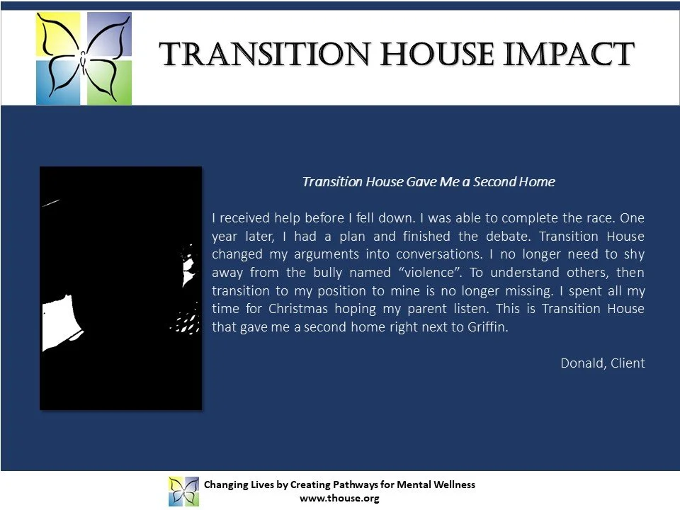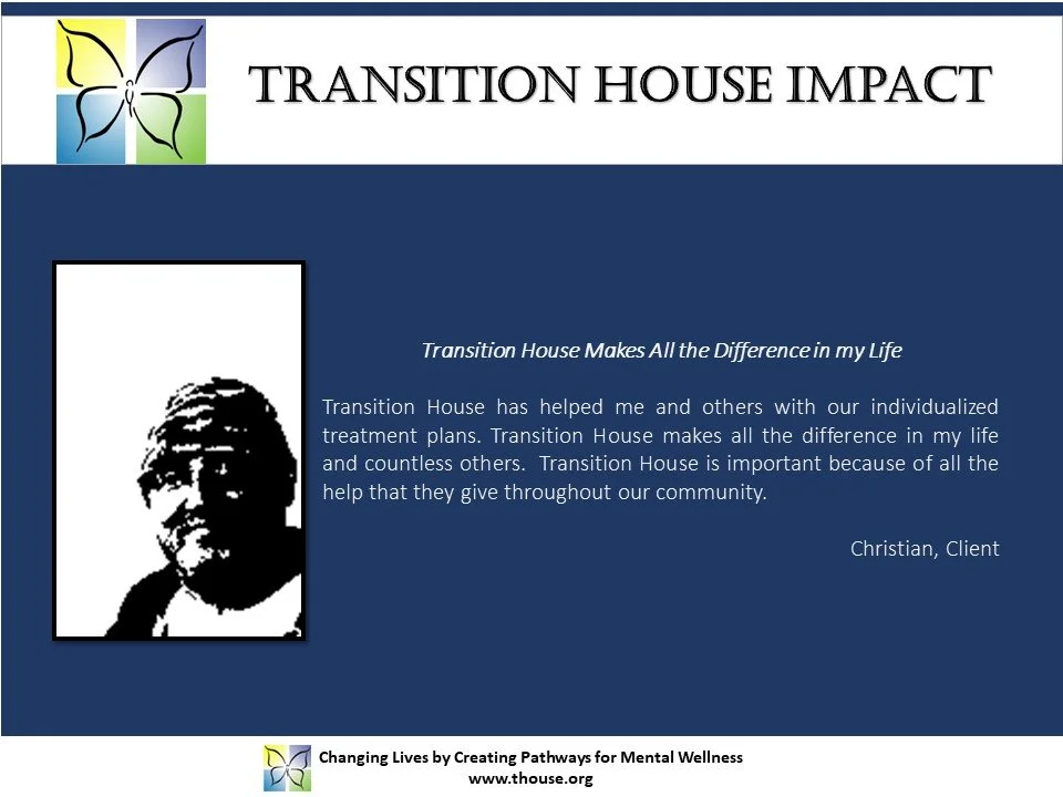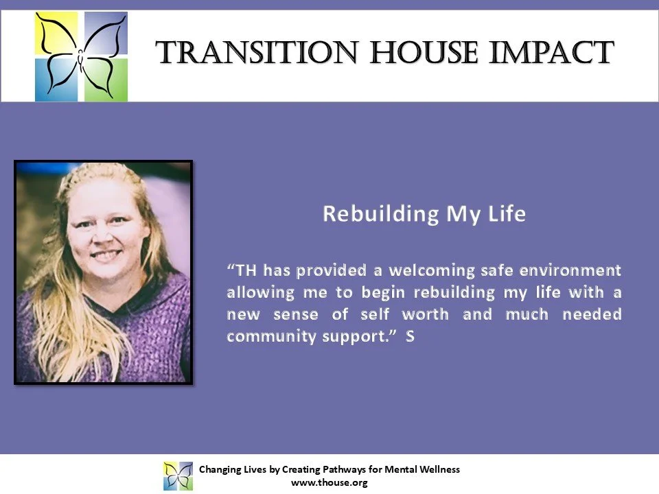 “Transition House matters because it’s a place that saves you when you’re at your lowest point mentally. They help you re-stabilize and have a safe place where you can live. I don’t know where I would be without Transition House.”