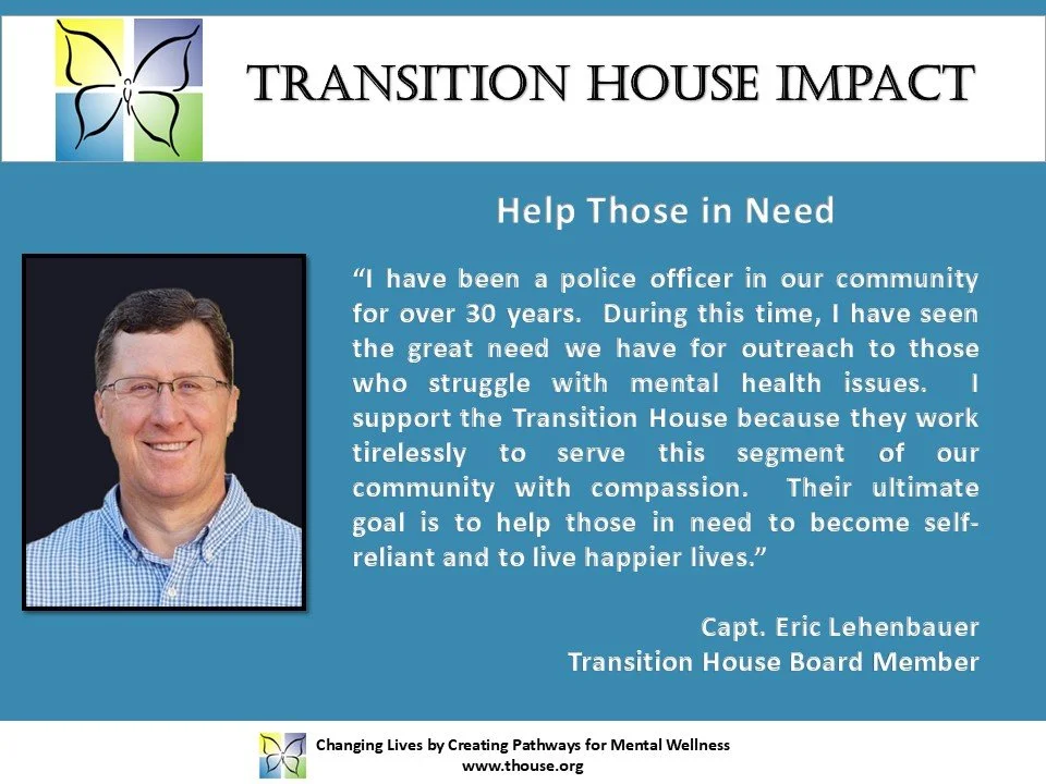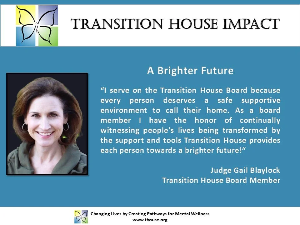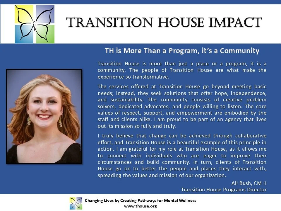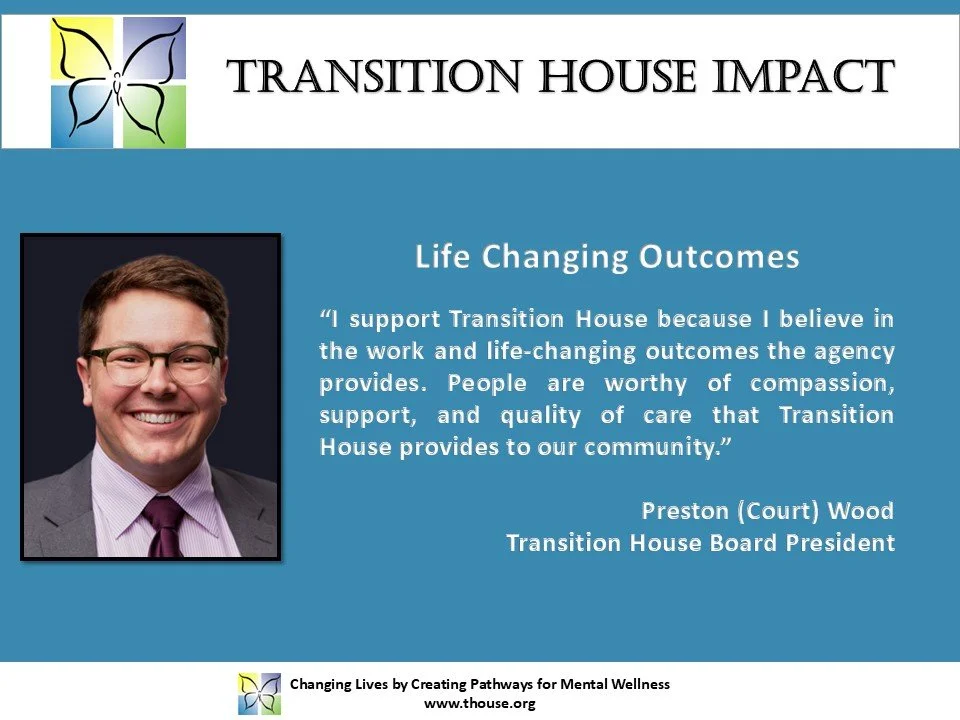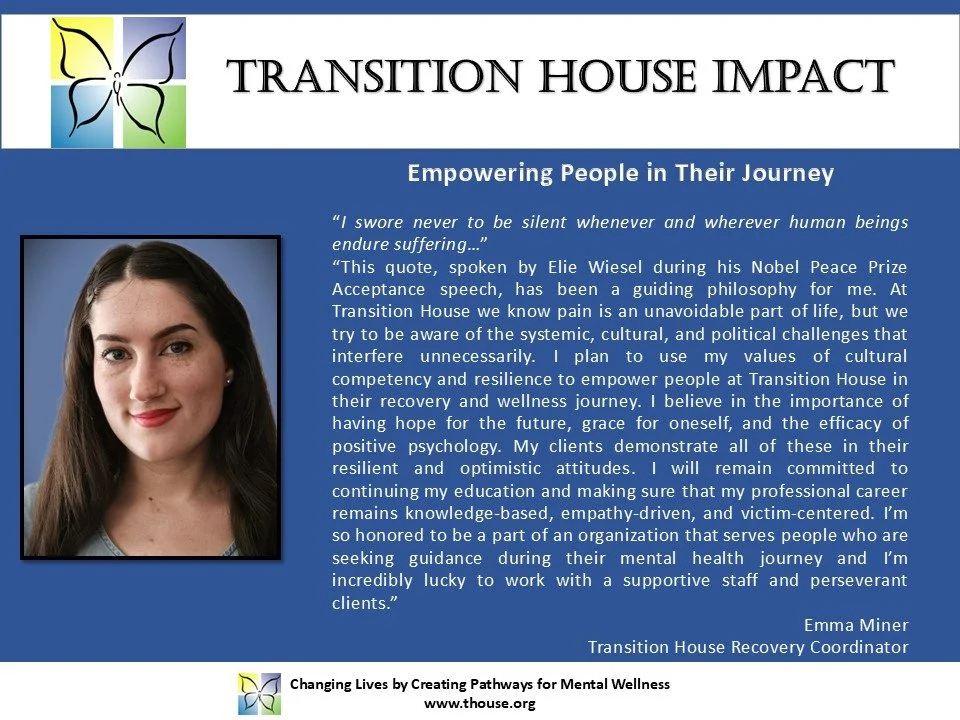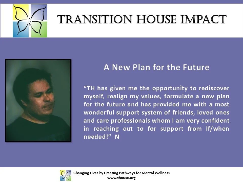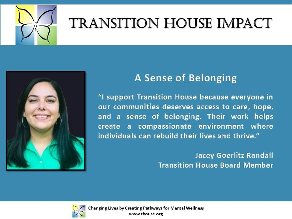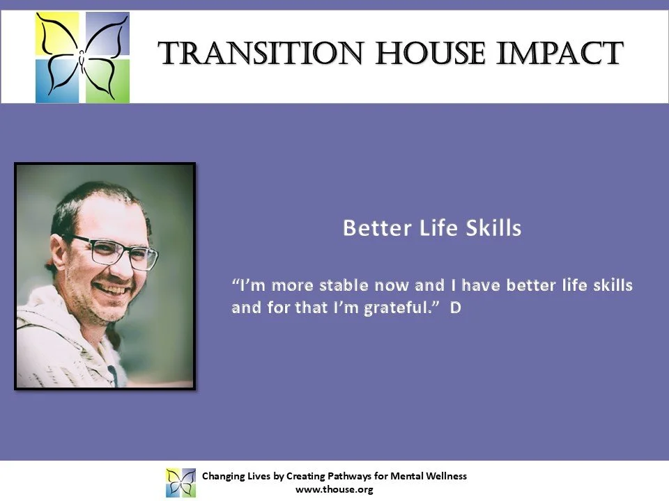 “Transition House matters because it’s a place that saves you when you’re at your lowest point mentally. They help you re-stabilize and have a safe place where you can live. I don’t know where I would be without Transition House.”