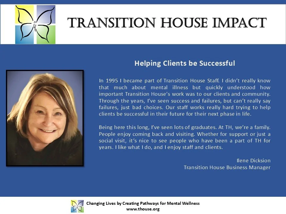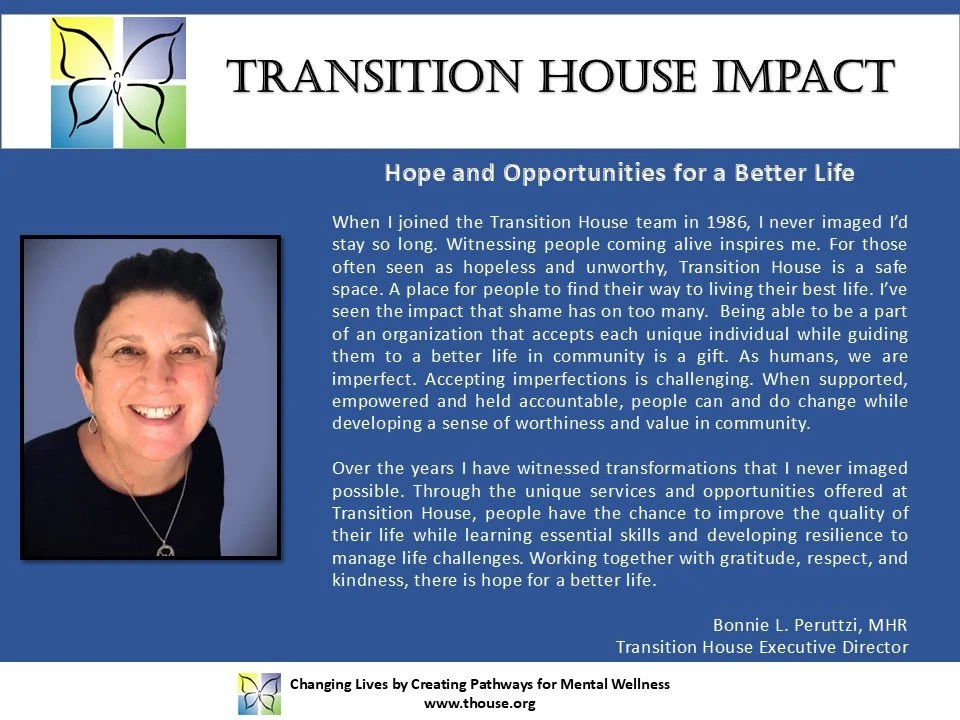 “With forty-one years of experience, Transition House has built a robust network dedicated to serving its clients. In interviewing six of Transition House’s success stories, we have identified some of the systems, attitudes, and approaches that allow Transition House to change lives.”